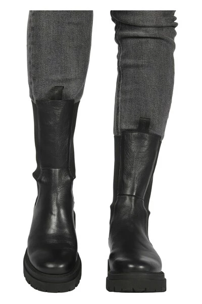 De UL93 is een verhoogde Chelsea boot van het merk Blackstone die zich kenmerkt door het minimalistische silhouet. Het gladde leer dat gebruikt is voor deze boot heeft een luxueuze uitstraling en de stevige zool geeft de boot een krachtige, stoere look. Door de aansluitende schacht is deze laars perfect voor onder een rok of jurk.