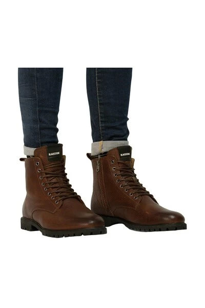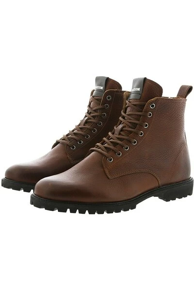 De SG49 boots kenmerken zich door het herkenbare, minimalistische design, het bovenwerk dat gemaakt is van premium zacht leer, een stevige profielzool, een zachte schapenvacht voering, een rits aan de binnenkant van de schoenen, gewaxte veters en metalen eyelets. Pinroll of vouw je jeans tot net boven de boots voor een edgy en on-trend look.